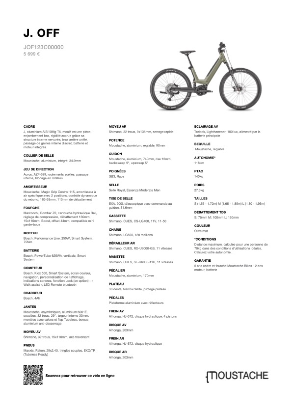 MOUSTACHE J OFF / Olive / Transmission Ă chaine / Batterie 625Wh
